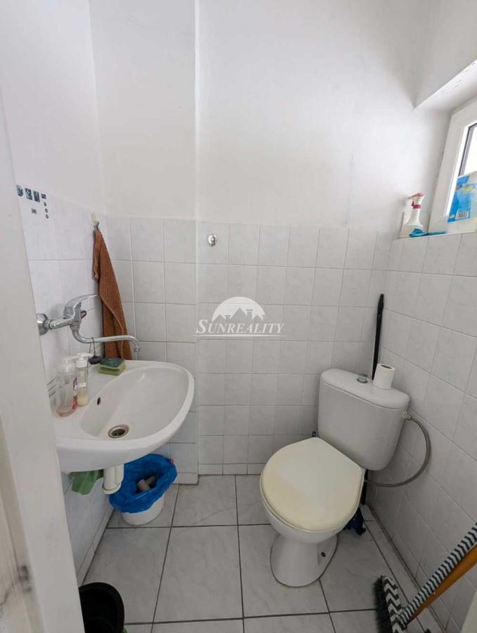 Eladó, különféle tevékenységre használható épület Komárom szélesebb központjában, egy lakótelepen.