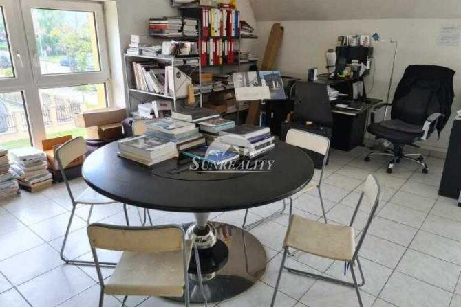 Előnye, hogy üzleti célokra is használható. A téglaépület egy 384 m² alapterületű telken áll. Az ingatlan három szinten összesen 135 m² hasznos alapterületet kínál. Az épület alagsorral rendelkezik. Az ingatlan egy sorház részét képezi. A fűtés saját elektromos padlófűtéssel biztosított. Az épület elrendezése szerint több tágas helyiségre, néhány kisebb irodára és a pincében található raktárhelyiségekre oszlik. A földszint belmagassága kb. 3,5 m.